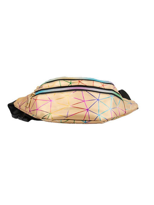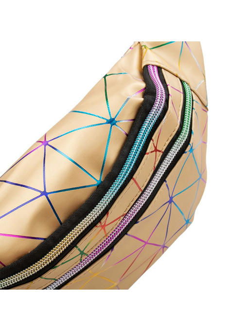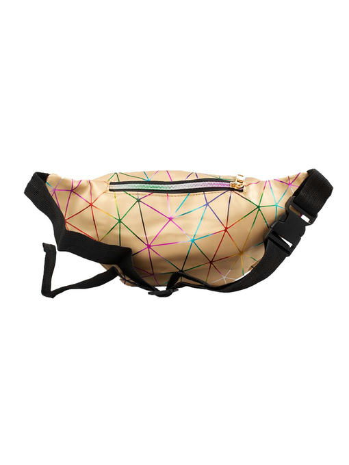 Красивая поясная сумочка стильно вписывается в женский образ. Когда такой аксессуар изготовлен из качественного материала, радует глаз неизбитой расцветкой и удобен конструктивно, он будет полезным и модным предметом гардероба. Модель торговой марки VALIRIA FASHION привлекает жёлтым не ярким цветом и тонкими разноцветными линиями абстрактного узора-сеточки. Изделие из заменителя кожи с гладкой матовой поверхностью привнесет и нотки контрастности, которые звучат здесь благодаря чёрным и одновременно радужно-разноцветным молниям и ремню. Фурнитура под золото делает ансамбль ещё ярче. Сумка с одним отделением, широким лицевым карманом и кармашком на тыльной стороне поможет Вам носить на поясе необходимые мелкие вещи и чувствовать себя комфортно