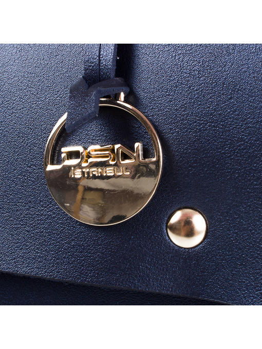 Темно-синий цвет, перламутровый отлив безупречно гладкой матовой поверхности, плюс золотистый блеск фурнитуры и скромного, но выразительного декора – перед нами сумочка, которая «умеет быть» нарядной, видной и, вместе с тем, готова дополнить не один повседневный женский образ. Она гармонично впишется в элегантные, оригинальные, деловые ансамбли и всегда будет радовать не проходящей новизной. А она определяется здесь контурами: мягкие сгибы (кажется, в изделии вовсе нет швов), обтекаемая форма, необычный покрой (трапециевидная модель с клапаном в немалой степени цельнокроеная) сразу дают понять, что перед тобой – классная вещь. И даже не одна! Ведь дизайнеры ТМ ЭТЕРНО разработали для модниц практичный комплект с внутренней косметичкой.