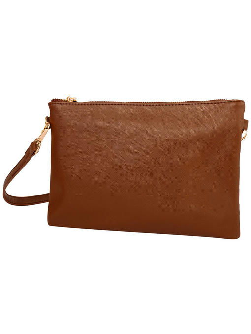 Тонкая сумка-клатч прямоугольной формы – стильное дополнение женского гардероба. Такой аксессуар подходит для ношения различных мелких предметов, документов, гаджетов. Модель торговой марки AMELIE GALANTI устроена внутри достаточно практично – с двумя просторными карманами, которые позволяют рационально использовать имеющийся объём. Снаружи на тыльной стороне также имеется кармашек на молнии. Удобство изделия ещё и в том, что в комплекте с ним идут съёмные плечевой ремень и ручка-петля. Коричневый цвет однотонной сумочки насыщенный, не тёмный, очень приятный, его эффектно дополняет фурнитура под золото. Заменитель кожи хорошего качества и аккуратное изготовление позволяют говорить о долговечности клатча. можно по доступной цене