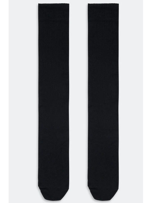 Классические однотонные женские гольфы черного цвета. По верху широкая мягкая резинка, которая не перетягивает ногу и не оставляет глубоких следов на коже.