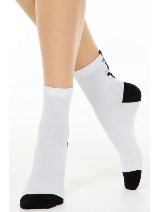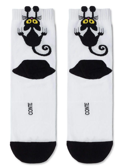 Украшены рисунком котик. Пятка и мысок контрастные. Можно носить с джинсами, брюками, юбками, шортами каждый день на работу, учебу, прогулки, дома, в гости, на занятия спортом и фитнесом. С помощью таких носков легко создавать яркие образы.