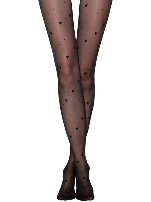 Тонкие эластичные фантазийные колготки с диагональным рисунком сердечки.