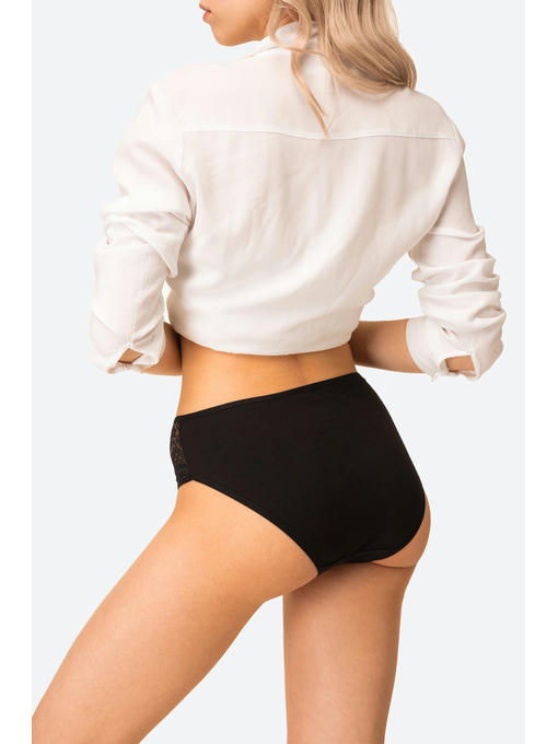 Ажурное кружево и идеальная посадка. Эти чёрные трусики с хлопковой ластовицей подчеркнут ваши бёдра, подарят комфорт и позволят чувствовать себя уверенно.