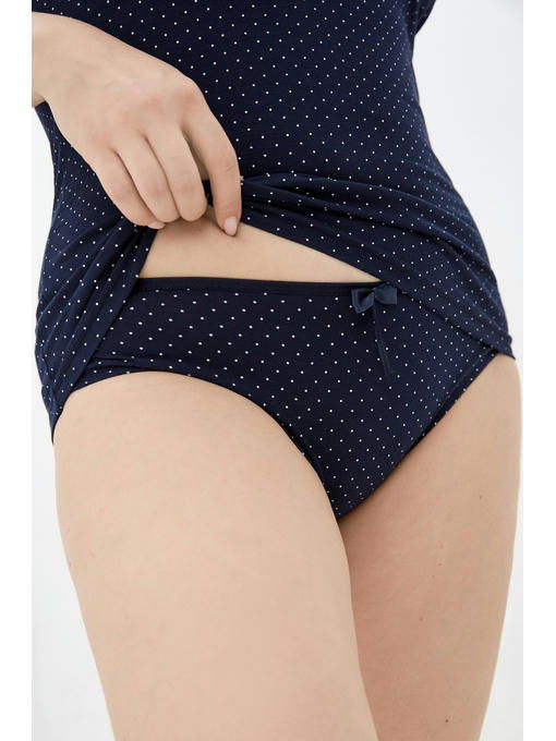 Женские трусики слипы средней посадки, в горошек, украшены атласным бантиком. Эластичный пояс и проймы обеспечивают идеальную посадку по бедрам и талии. Хлопковая ластовица и невидимые швы не ощущаются, что обеспечивает максимальный комфорт, даже для беременных.