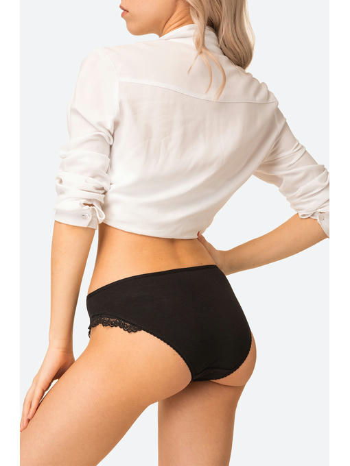 Ажурное кружево и идеальная посадка. Эти чёрные трусики с хлопковой ластовицей подчеркнут ваши бёдра, подарят комфорт и позволят чувствовать себя уверенно.