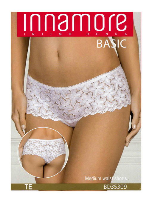 Трусы шортики с кружевной вставкой на поясе. Трусики выполнены из эластичного материала. Мягкая ткань обеспечивает плотное прилегание к телу и свободу движений.