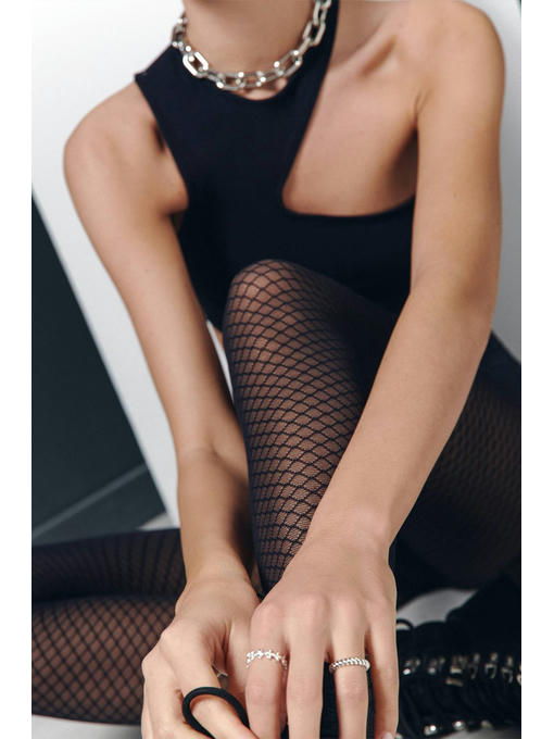 Элегантные капроновые колготки с рисунком – отличный вариант разнообразить женский образ. Стильный узор ромб создает эффект сеточки, который не оставит девушку незамеченной в любой ситуации. Фантазийные колготки плотностью 40 Dеn представлены в базовом черном цвете.
