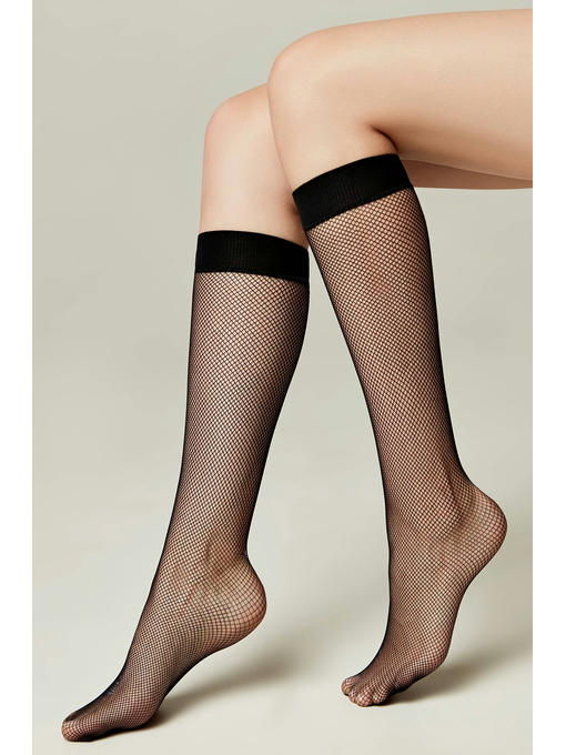 Женские элегантные гольфы в мелкую сеточку выполнены из прочных нитей полиамида и эластана. Утонченные и легкие, они способны украсить и добавить яркости в любой образ. Гетры удобной посадки станут отличным решением на каждый день.