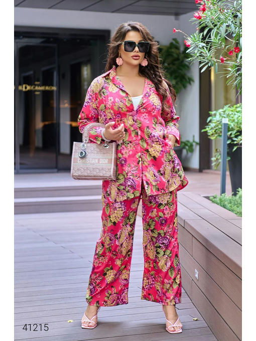 Женский брючный костюм. Рубашка и штаны. Ткань: креп.