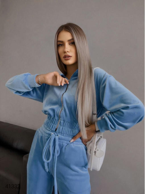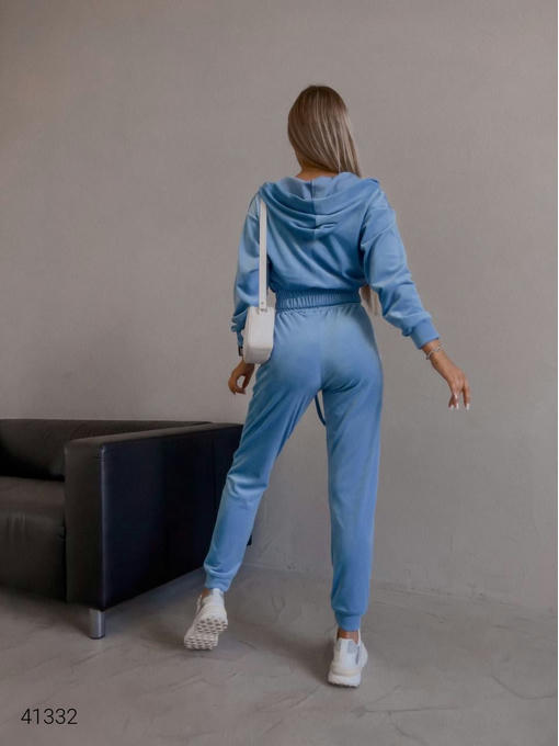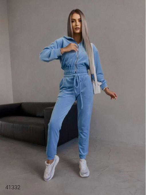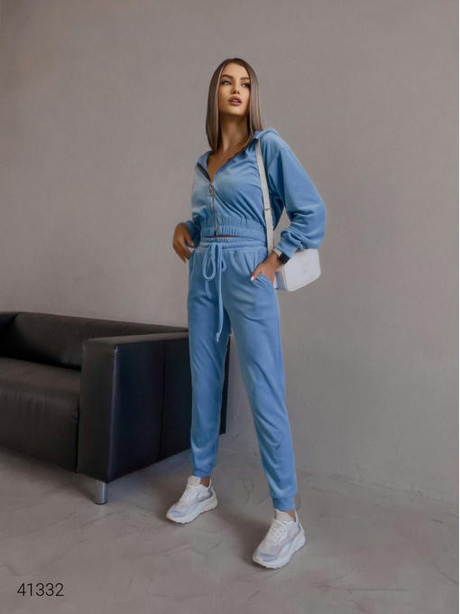 Женский велюровый костюм. Кофта на молнии с капюшоном и штаны.