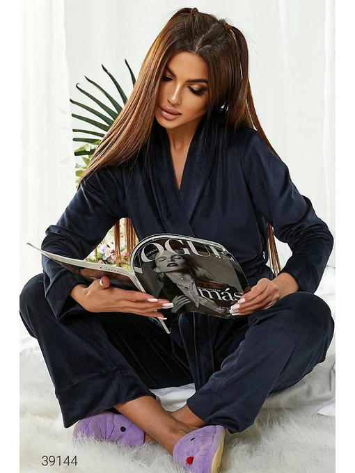 Женский домашний костюм из велюра. Халат укороченный и штаны. Теплая и приятная к телу.