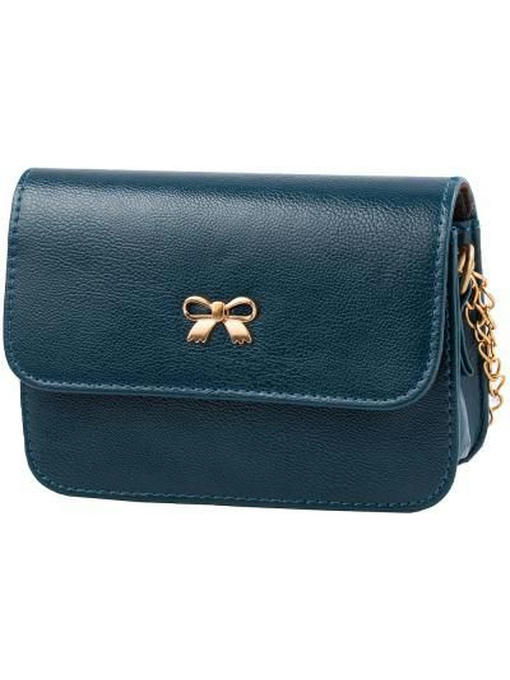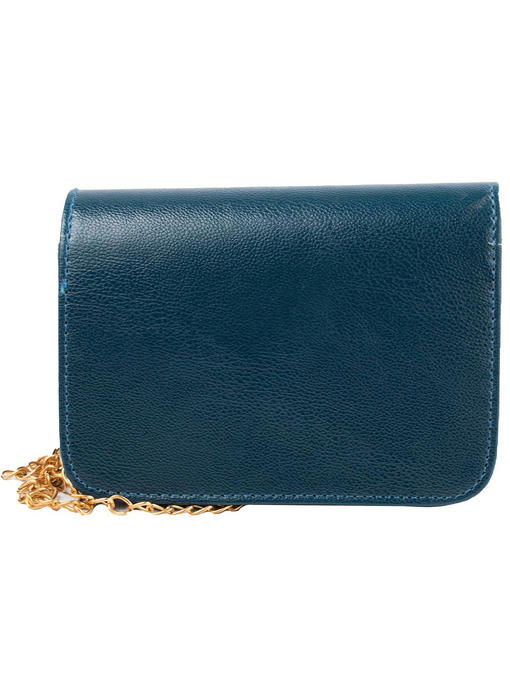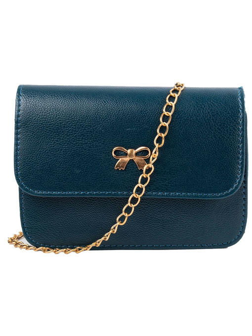 Скромный маленький тёмно-синий клатч с ярко-золотистой цепочкой-ремнём и симпатичным бантиком в роли декора на клапане выглядит стильно. Аксессуар торговой марки VALIRIA FASHION всегда будет полезным в женском гардеробе, тем более что купить его можно недорого. Качественный заменитель кожи – подходящий материал для изготовления повседневно-удобных, неприхотливых кожгалантерейных изделий. Данная модель привлекает классически-простой формой с плотно отстроченными швами, за счёт чего она устойчива и хорошо держит фасон. Магнитные застёжки способствуют мобильности в обращении с поклажей из мелких предметов, для размещения которых внутри имеется ещё и пара сподручных кармашков. Аккуратные отделочные строчки, надёжные швы и плотная тканевая подкладка, плюс крепкая фурнитура делают сумку практичной и ноской