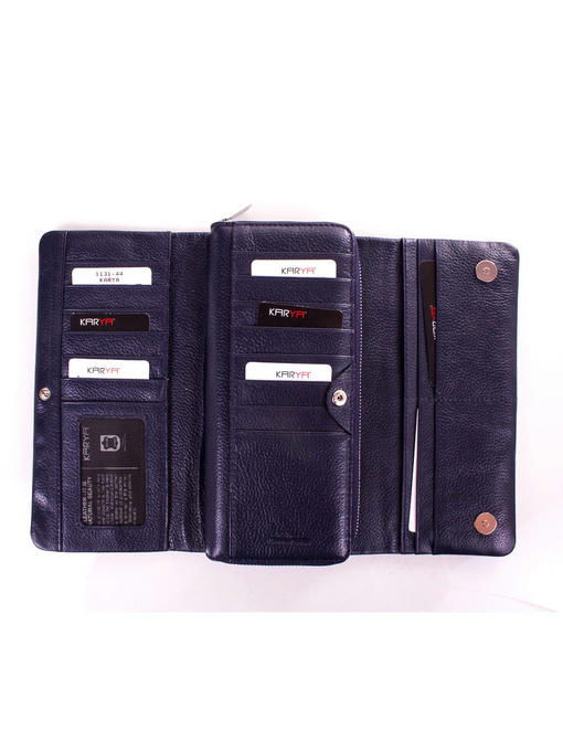 Иметь дело с кошельком гораздо удобнее и безопаснее, чем обходиться без него. Хотя кто-то скажет, что при таком раскладе можно потерять сразу все, одним махом – и деньги, и карты, и важные записки. Что можно сказать – значит, обладание кошельком воспитывает еще ответственность и внимательность, погружая, скажем так «в реальный мир». И если уж «погружаться», то лучше всего это делать с кошельком торговой марки KARYA – классические детали вкупе с новаторскими конструкторскими и дизайнерскими идеями дают прекрасный результат. Кошелек в два сложения – один клапан закрывает отделение для купюр, второй – для карточек.