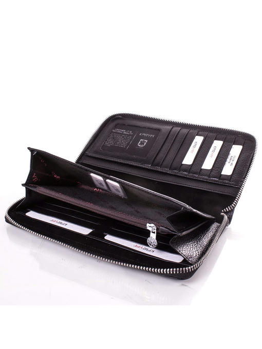 Кошелек – удобная и практичная штука, это все знают. Но не всегда и не всем необходим этакий тяжеловесный, солидный и серьезный аксессуар, к которому иначе как на «Вы» и не обратишься. Если Вам подходит более простой вариант этого аксессуара, то можете купить данный экземпляр, произведенный торговой маркой KARYA. Стильность, простота и оригинальность – вот главные достоинства этого компанейского кошелька. Без лишних деталей и нагромождения отделений с карманами и карманов с отделениями Вы получаете только отсеки для купюр, карман на «молнии», а остальное – под карточки, пропуск и даже ручку или карандаш.