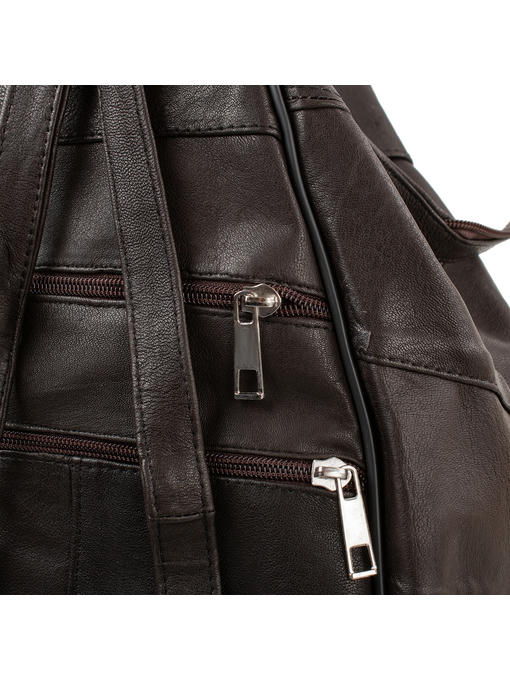На тыльной стороне сумки-рюкзака есть 2 прорезных кармана на молнии.