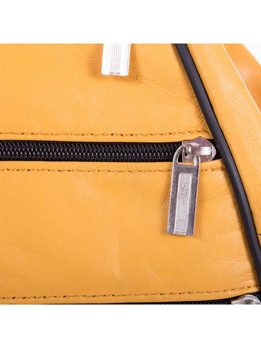 Аксессуары желтого цвета добавляют радости и света в повседневные и прочие образы, а когда они изготовлены из натуральной кожи и стоят недорого, как этот рюкзак марки TUNONA, получаются особо ценные экземпляры. Контрастный вид образуется с участием черных деталей – «молний», наружной окантовки, подкладки. Устройство брендовой модели радует оригинальностью и способностью совмещать лямки в широкую ручку, что позволяет носить вещицу в виде обширной и модной сумки через плечо. Большая глубина и вместительность, множество сподручных карманов, в том числе на задней стенке, делают этот рюкзак-сумку очень практичным и удобным. Тщательная внутренняя отделка, аккуратность в изготовление, мягкость и эластичность материала определяют высокую степень комфортности, которую Вы получите, купив такой аксессуар.