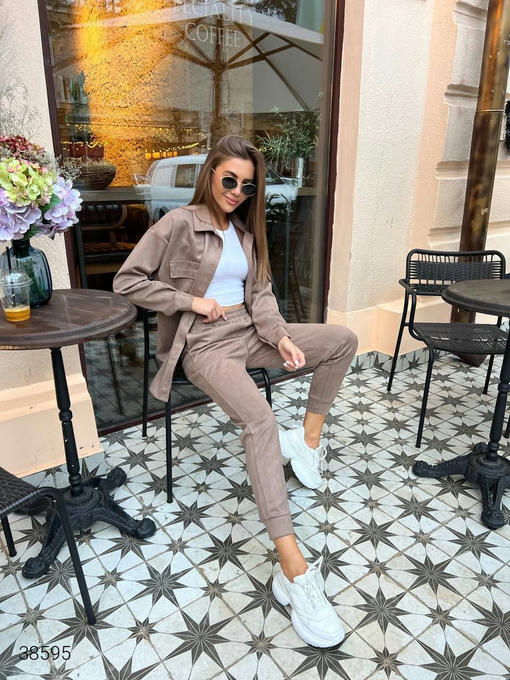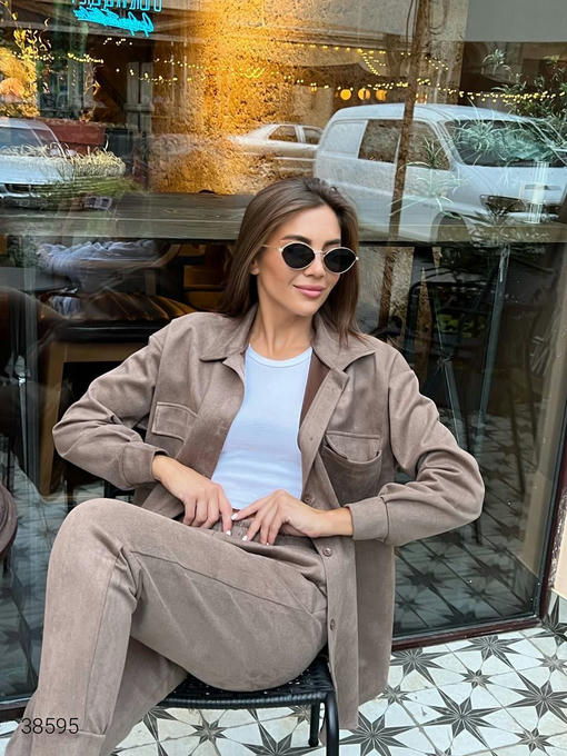 Женский костюм из рубашки и штанов. Рубашка застегивается на пуговицы. Штаны на резинке. Цвет морской волны.
