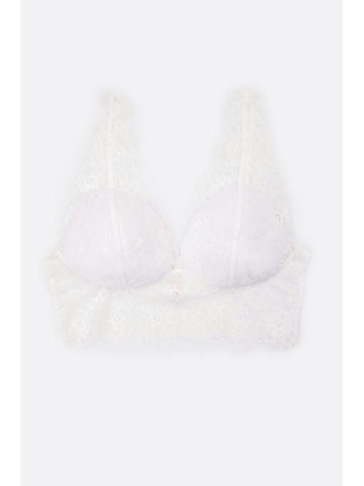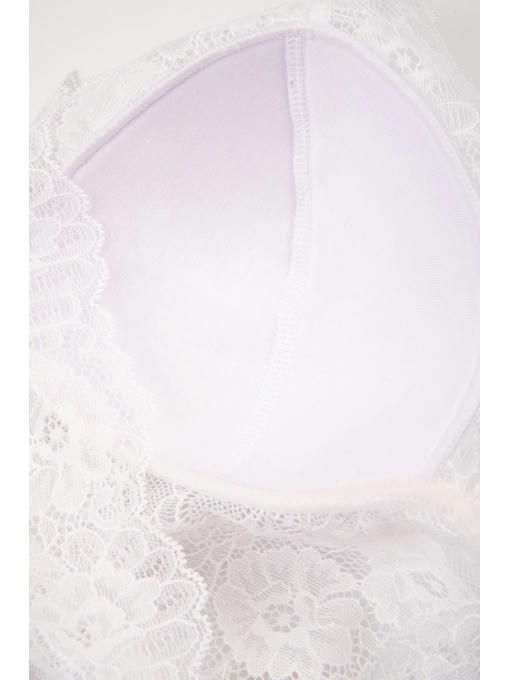 Кружевной топ на широких удобных бретелях с тонкими вставками из поролона. Бюстгальтер из прозрачного кружева с v-образным вырезом, без металлических застежек. Особенно удобен в жаркое время года.