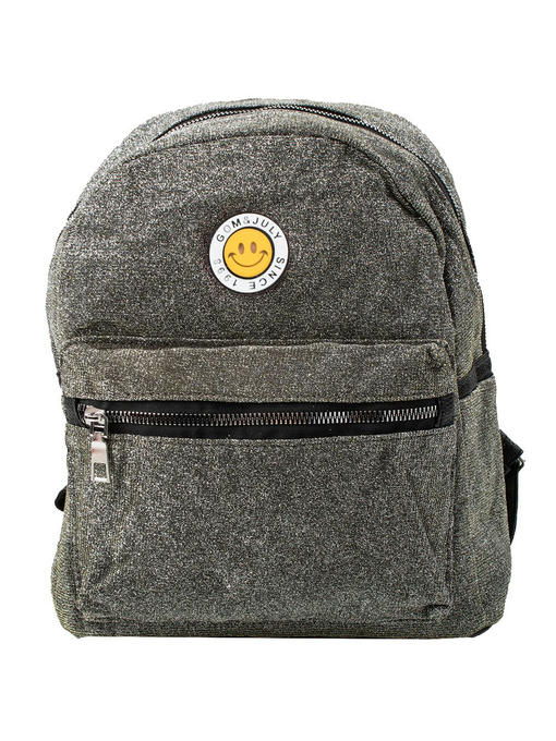 Серебристый блеск аккуратно присутствуют в образе, созданном дизайнерами торговой марки VALIRIA FASHION. Женский рюкзачок с блёстками выглядит модно и оригинально. Мкань удачно дополняют молнии с яркими металлическими зубцами и в целом фурнитура цвета серебра. Круглая эмблема со смайликом добавляет в ансамбль светлых радостных ноток. Практичный подход к созданию повседневного заплечного аксессуара проявляется здесь в использовании заменителя кожи. Из него изготовлены спинка, лямки и дно, это повысит долговечность изделия. Форма рюкзака простая, формат не слишком большой, но вмещающий массу разнообразных вещей. Аксессуар разгрузит владелице руки от повседневной поклажи и стильно дополнит каждый образ