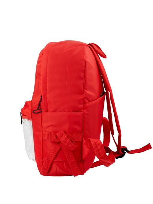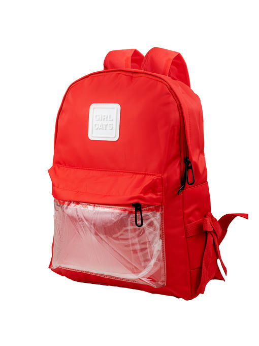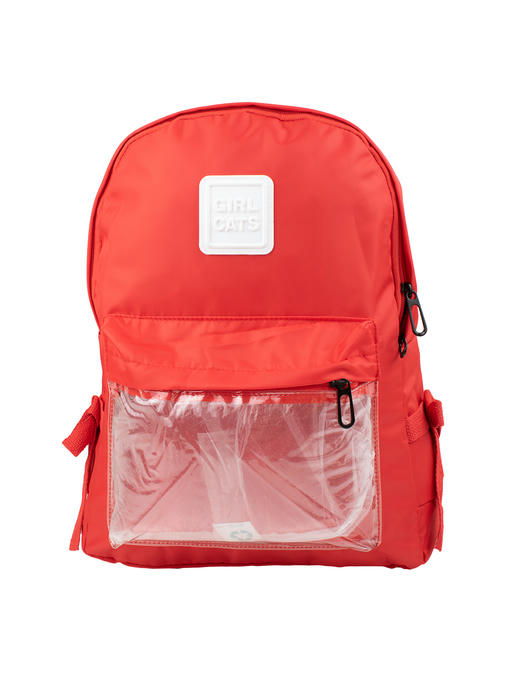 На лицевой стороне рюкзака расположен прозрачный накладной карман на молнии.