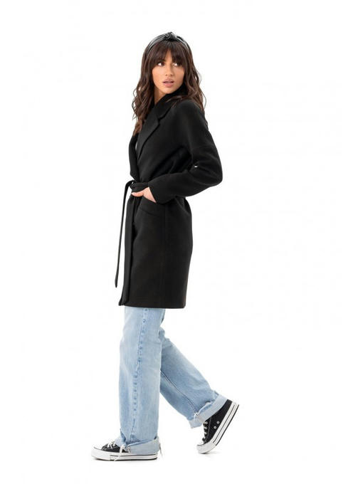 Пальто с отложным воротником. Мягкая линия плеча, рукав-реглан. Есть боковые карманы с листочкой. Пальто, сшитое из высококачественного турецкого кашемира, можно носить с идущим в комплекте поясом.