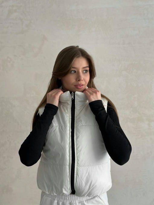 Жилетка двухсторонняя на змейке, снизу регулируется резинкаТкань: плащевка лаке, силикон 200