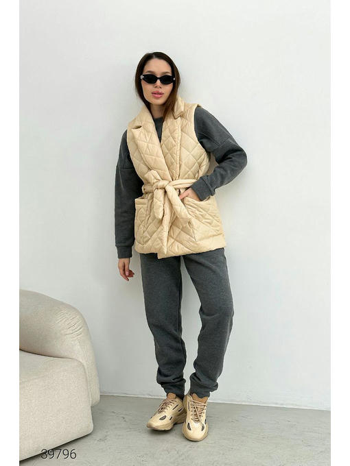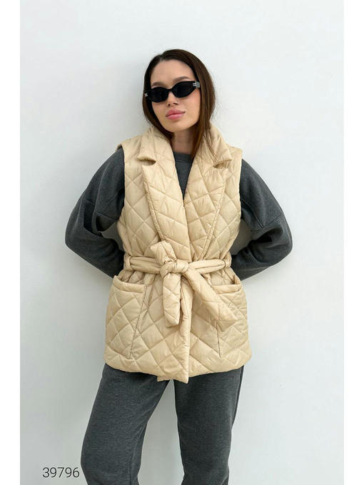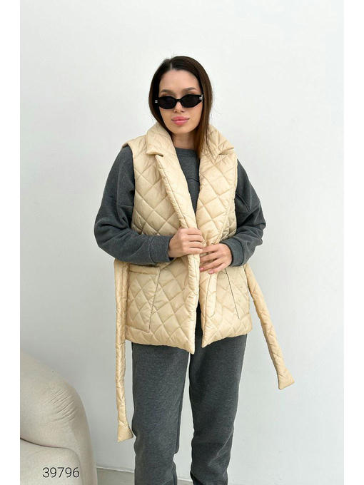 Жилет женский в ромбик. Стеганый жилет на запах, в комплекте пояс. Есть карманы. Ткань: плащевка с подкладом, утеплитель силикон 200 г. м2