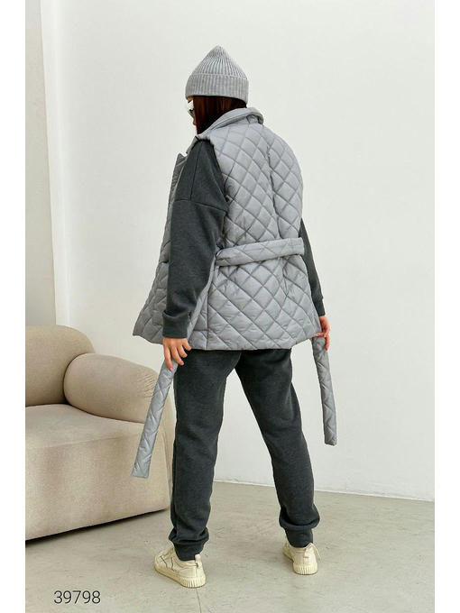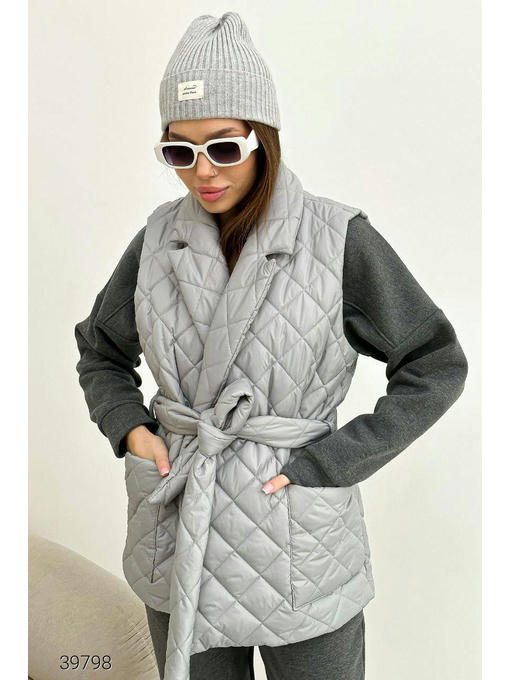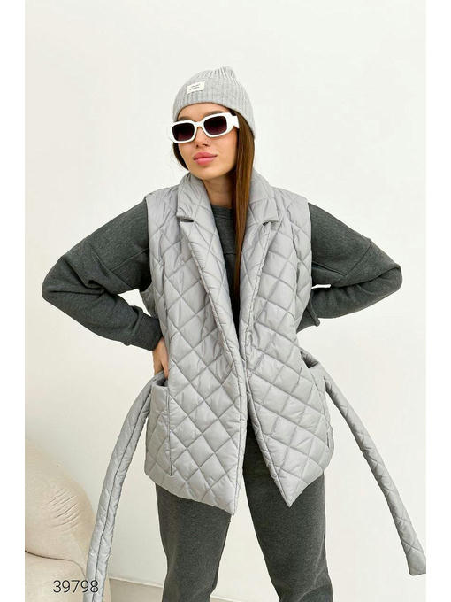 Жилет женский в ромбик. Стеганый жилет на запах, в комплекте пояс. Есть карманы. Ткань: плащевка с подкладом, утеплитель силикон 200 г. м2