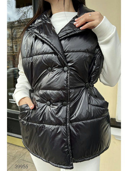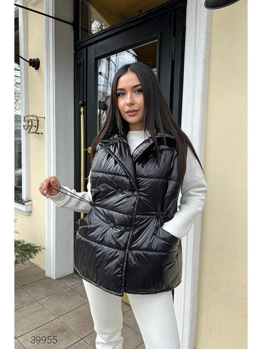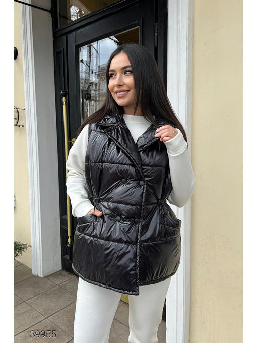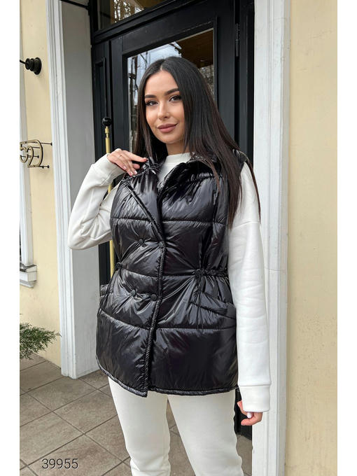 Жилет женский стеганый. Жилет двубортный в стиле оверсайз. С помощью кулисы можно регулировать объем талии. Ткань: плащевка”монклер” стеганая на синтепоне 150 г. м2. плюс подклад.