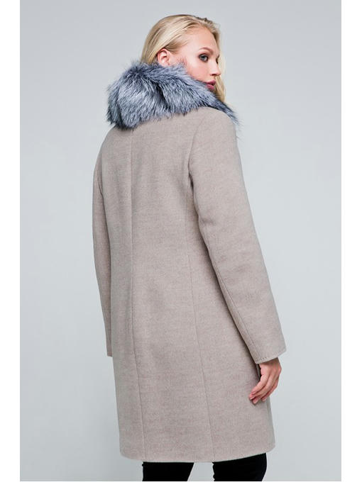 Съемный мех чернобурки на отложном воротнике придает лоск модели. Милый бубон из натурального меха, пристегивающийся металлическим карабином к верхней части кармана создает игривое настроение.