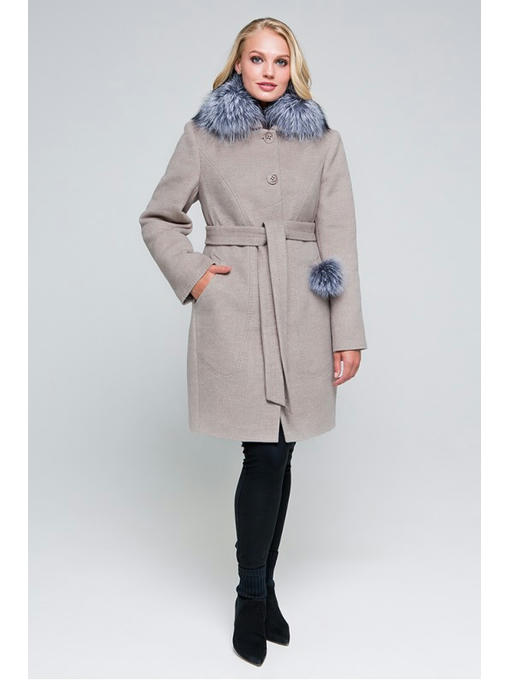 Пальто с прорезными карманами декорирует строчка имиритирующая ручной стежок. Есть пояс, который добавляет модели интересный вид. Изделие застегивается пуговицами.