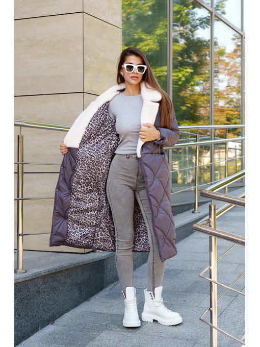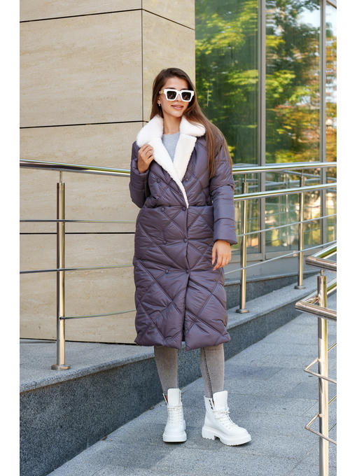 Зимнее стеганое пальто с водоотталкивающей плащевки и эко меха норки на воротнике.