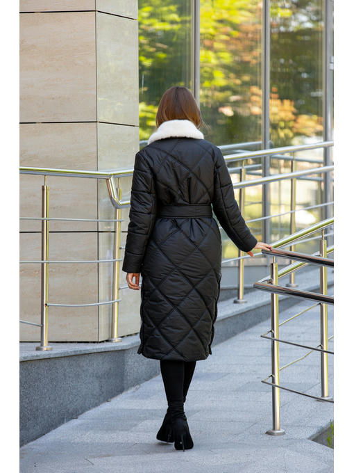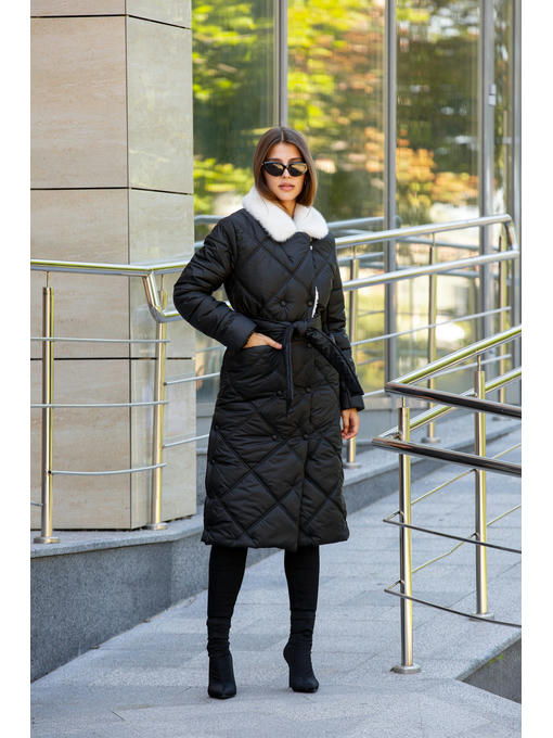Зимнее стеганое пальто с водоотталкивающей плащевки и эко меха норки на воротнике.