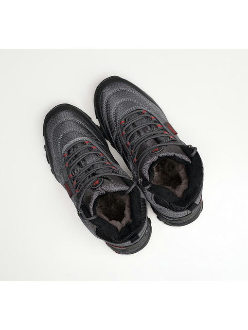 Верхняя часть ботинок выполнена из плотного текстильного материала. Толстая подошва