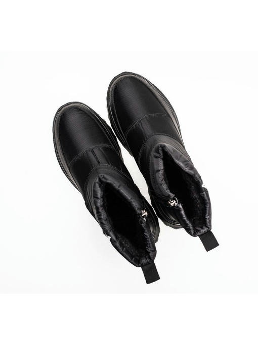 Верхняя часть сапог выполнена из текстильного материала. Толстая подошва и меховая