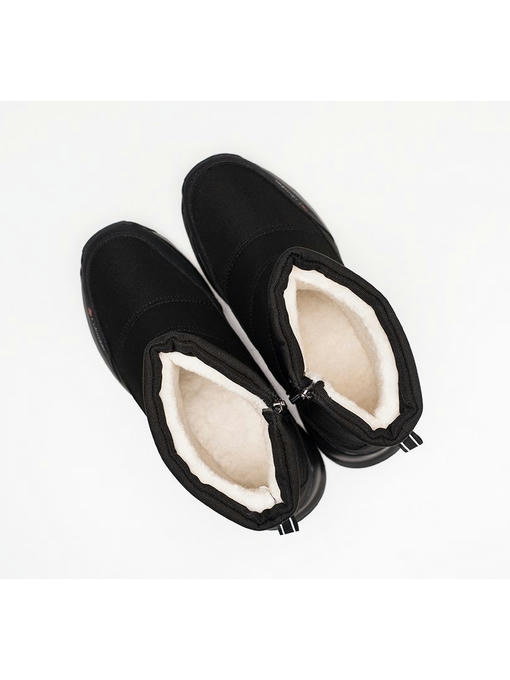 Модель выполнена из комбинированной плотной ткани и утеплена внутри мехом.Высокая подошва имеет дополнительную защиту от влаги