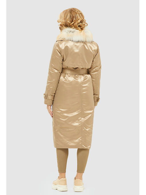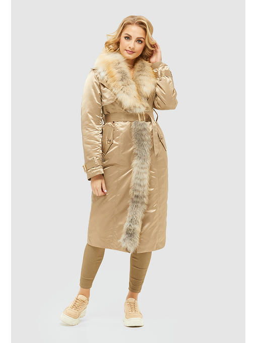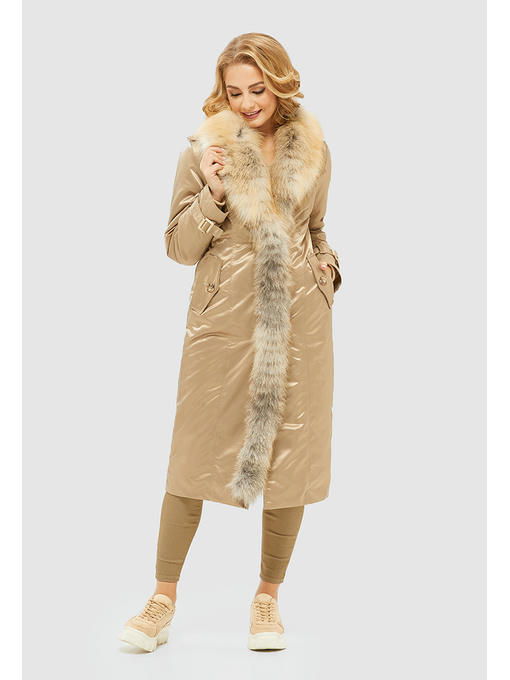 Зимняя парка — плащ прямого силуэта со съемным шалевым воротником из меха Gold fox.