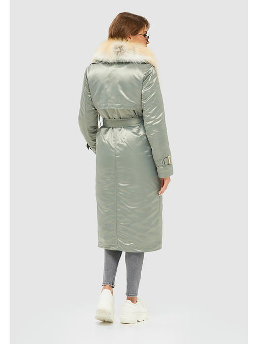 Зимняя парка — плащ прямого силуэта со съемным шалевым воротником из меха Gold fox.