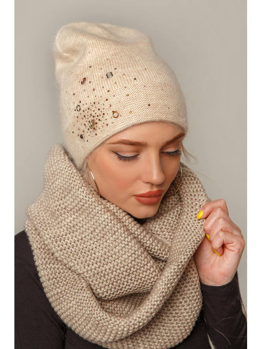 Женская шапочка в молодежном стиле с люриксом цвета пудра