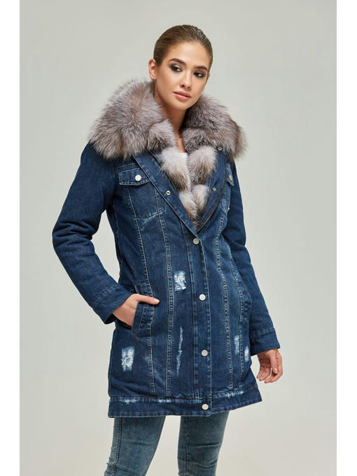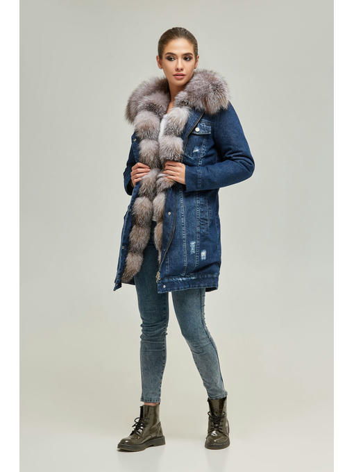 Зимняя джинсовая парка с натуральным мехом
