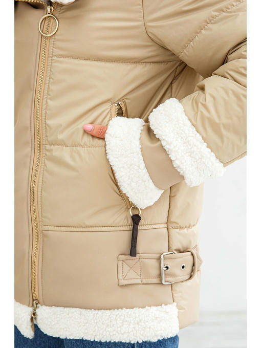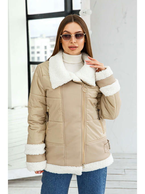 Куртка еврозима из водоотталкивающей плащевой ткани в сочетании с искусственной кожей и воротником из искусственного меха.
