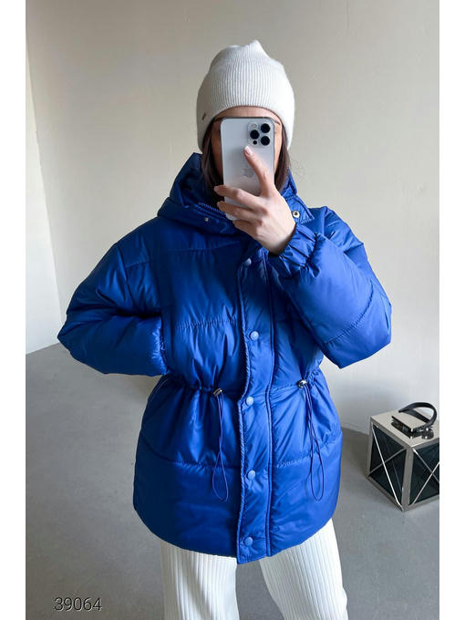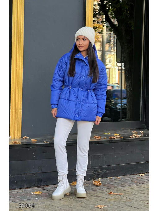 Зимняя куртка женская. Ткань: плащевка, утеплитель силиконизированный синтепон 250 г. м2. Есть кулиска, с помощью которой регулируем объем, два кармана в верхней части. Кнопки, молния, резинка в цвет основаной ткани.