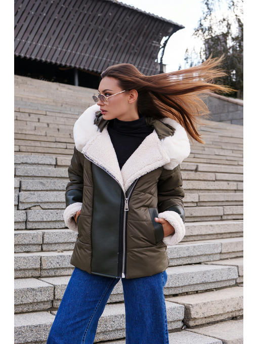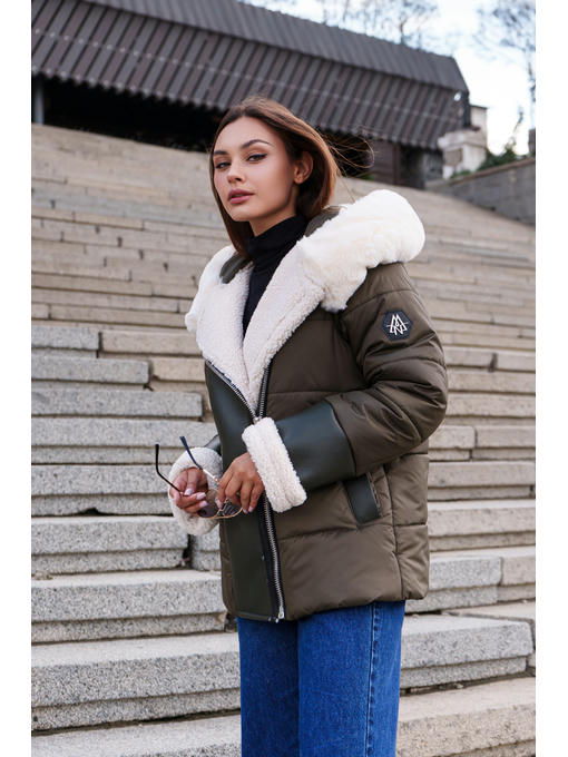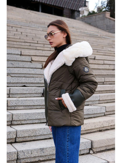 Комбинированная зимняя куртка с водоотталкивающей плащевки и искусственного дубляжа.