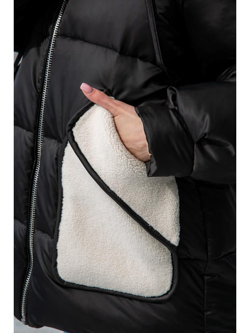 Зимняя куртка из водоотталкивающей плащевки в сочетании с искусственным мехом тедди.