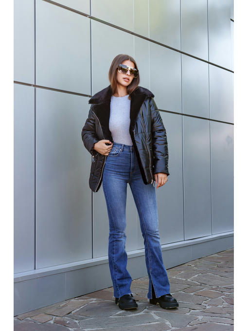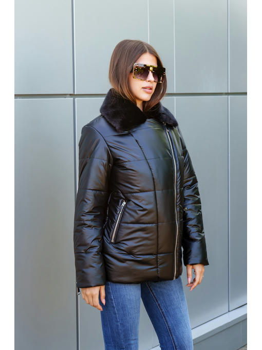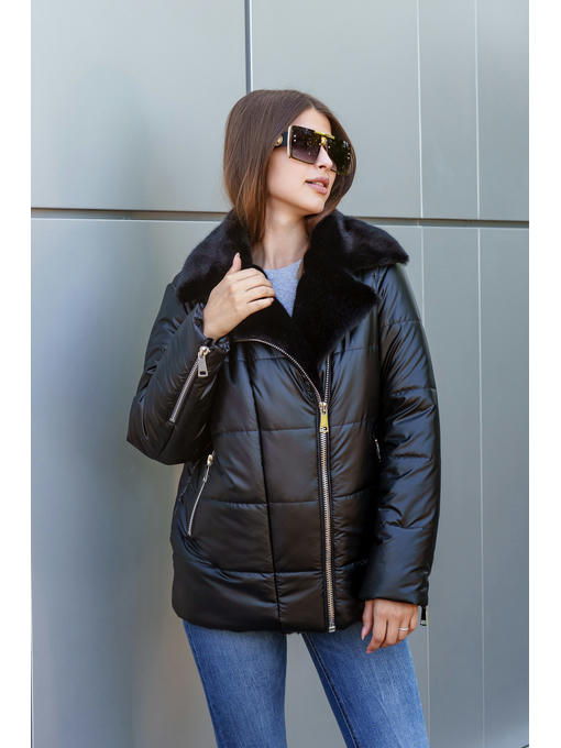 Зимняя куртка с водоотталкивающей плащевки и воротником из искусственной норки.