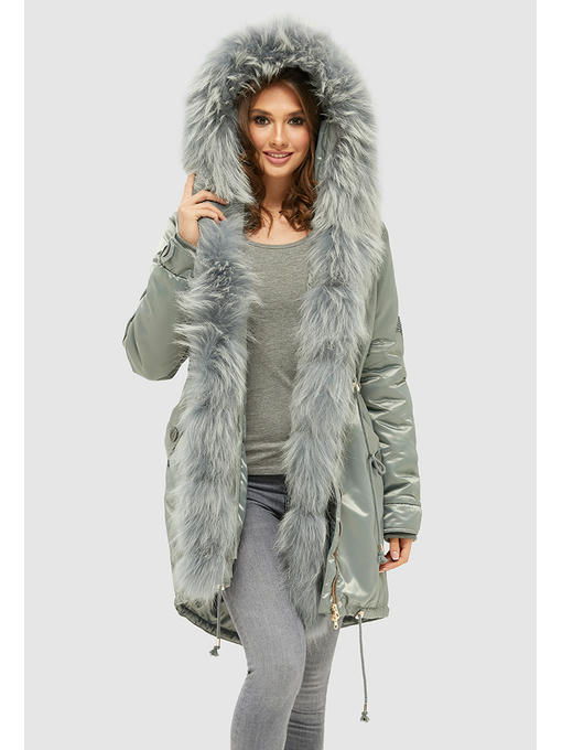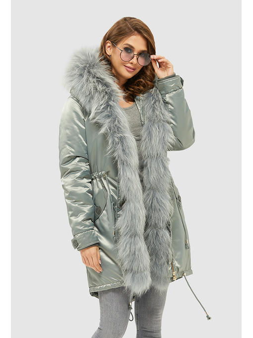 Зимняя парка из атласной водоотталкивающей плащевой ткани со съемным мехом енота