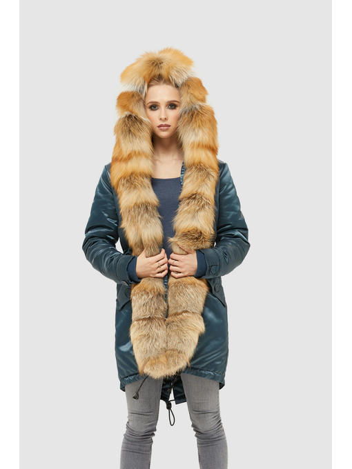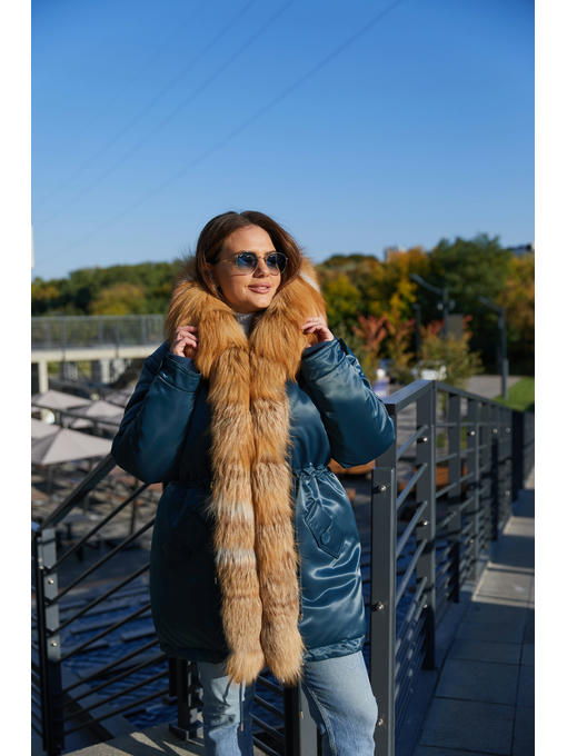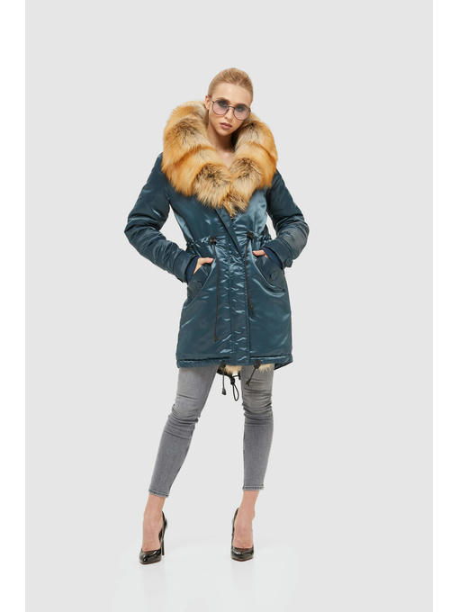 Зимняя парка из атласной водоотталкивающей плащевой ткани со съемным мехом чернобурки