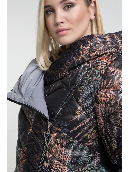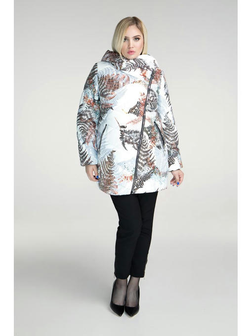 Зимняя удлиненная куртка больших размеров до 70-го с интересным принтом – листья папоротника. Изделие идеально подойдет для девушек с фигурой больше чем XL. Практичная двубортная застежка спасет от морозного ветра, молния двустороняя. Модель создана для условий морозной зимы – воротник капюшон практичный и сохраняющий тепло, водонепроницаемый верх куртки. Утеплено изделие на slimtex 150 что рассчитано на мороз до -20 градусов. Подкладочная ткань нейлон.
