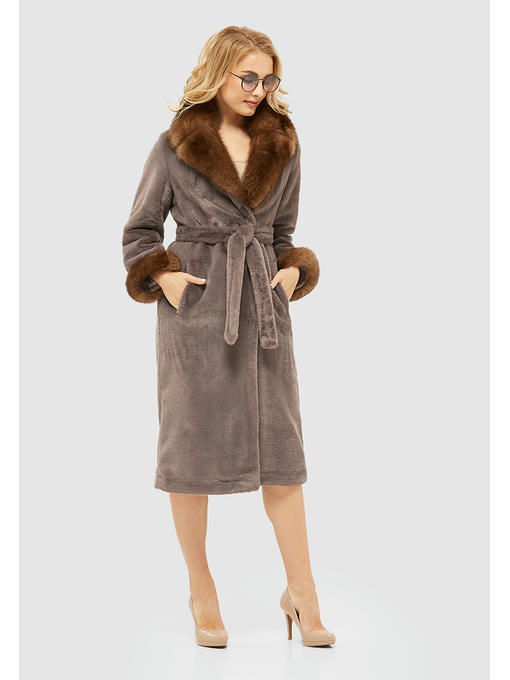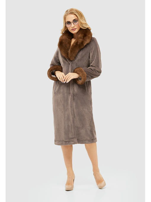 Зимняя шуба классического кроя из высококачественного эко— меха с воротником из натурального меха песца .