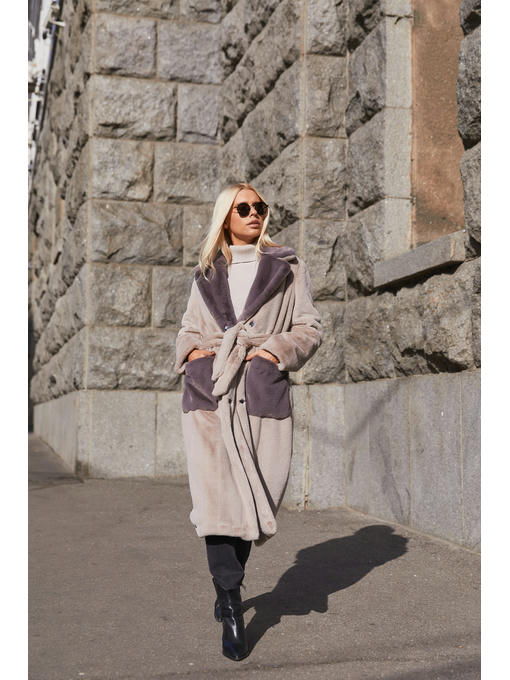 Зимняя комбинированная шуба классического кроя из высококачественного эко— меха.